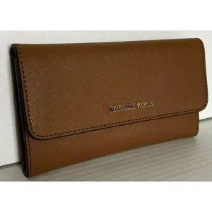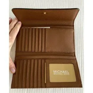 New Michael Kors Jet Set Travel Large Trifold Wallet Leather Luggage