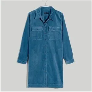 Madewell Dress Womens 2X Blue Corduroy Mini Shirtdress Long Sleeve Shift Collar