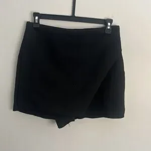Zara Womens Black Wrap Front Asymmetrical Skort Mini Shorts Size Medium