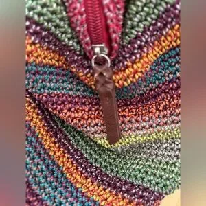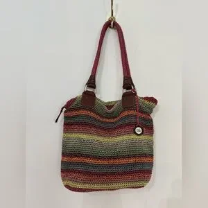 The Sak Cambria Hand Crochet Multi Coloured Gypsy Hobo Striped Tote Bag Purse