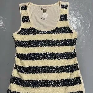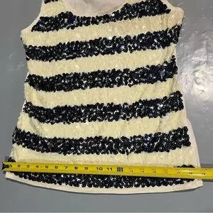 Stylish tank top with black and white sequin stripes. Perfect for a night out.