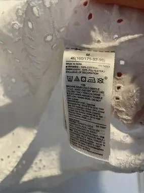 Lightweight white eyelet blouse with a square neckline. Short sleeves and delicate embroidered perforations. Feminine and breathable for everyday wear.
