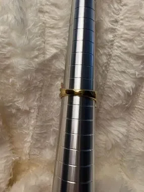 Elegant gold-tone ring with geometric cutout design. Sparkling crystal accents add refined shine. Lightweight and versatile for everyday or dressy wear. Features a polished gold finish and clear crystal detailing.