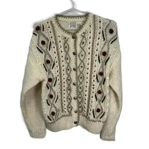 Vintage Bauble Cream Knit Cardigan Sweater‎ Large