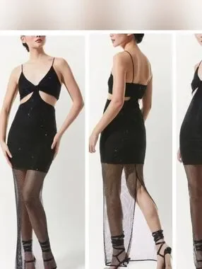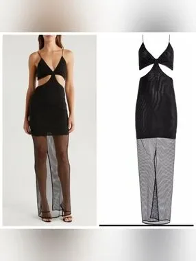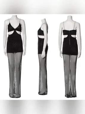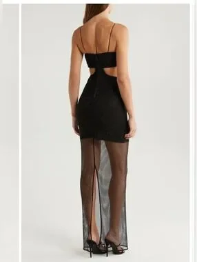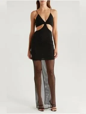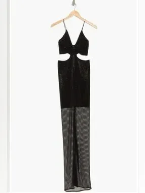 Alice + Olivia Havana embellished mesh cutout maxi dress in black Sz 0 $795