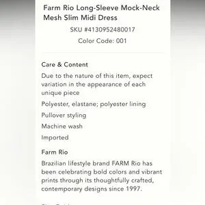🎉LAST ONE🎉Anthropologie NWT Farm Rio Mock- Neck Mesh Slim Midi Dress size XS.