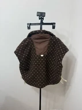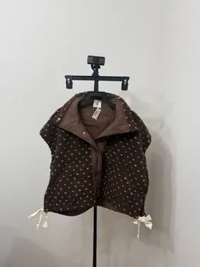 Layer-ready knit vest from Altar'd State. Rich brown color with subtle lighter speckled accents. Front snap buttons and pocket details. Sleeveless, relaxed fit. Easy to style over tees or sweaters.