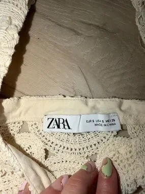 Zara Cream Crochet Square-Neck Puff Sleeve Crop Top