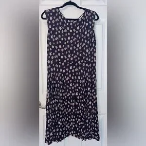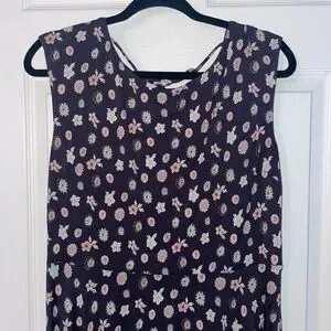 This LOFT charcoal sleeveless dress features a delicate floral pattern and is made from breathable cotton, making it lightweight and very comfortable to wear. Designed with an easy, flattering fit, it’s perfect for warm days or effortless layering. A subtle scoop neckline in the back is finished with a sweet tie detail, adding a charming and feminine touch. Casual yet polished, this dress is ideal for everyday wear, brunch dates, or relaxed outings.