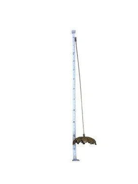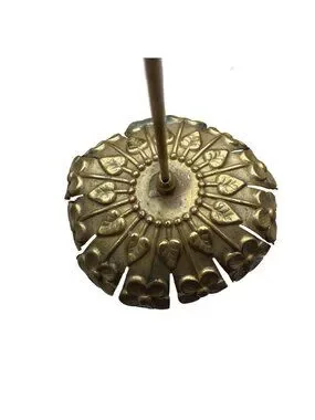 Noticeable wear with some cracks and repairs on the floral cup. Top diameter: 2 inches. Stick length: 10 inches.
