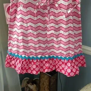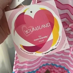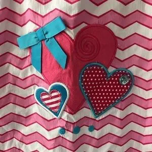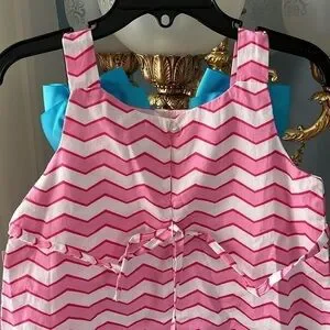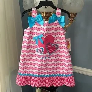 Brand New Youngland Pink & White Striped Ruffle Sleeveless Dress Turquoise Blue Bows Heart. Girls size 4T. So cute!