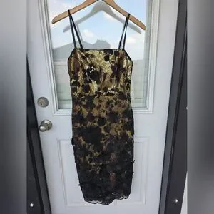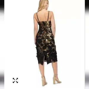$268 Eliza J Women's Floral-Appliqué Sequinned Dress Sz 2 NWT Cocktail Glam
