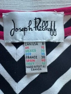 Joseph Ribkoff Black & White Chevron Midi Dress with Pink Trim