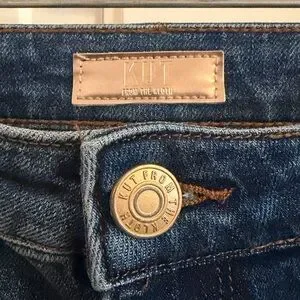 Kut from the Cloth Fay high rise, wide cuff, straight leg jeans with a relaxed fit. Fits more like a size 0.