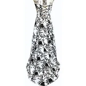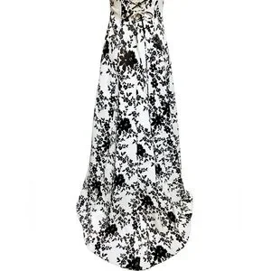 This elegant strapless dress by Blondie Nites showcases a sophisticated black and white floral pattern. The sleeveless design features a fitted bodice and a graceful A-line skirt, offering a timeless and chic silhouette. Its intricate detailing enhances the overall allure, making it a standout choice for any formal event.