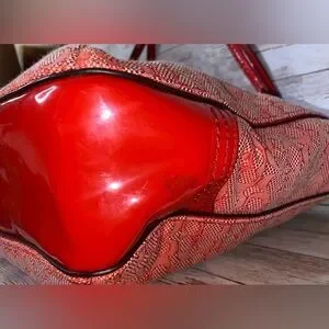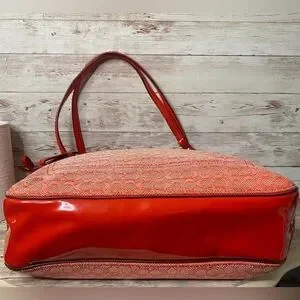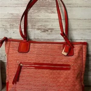 Coach Signature Jacquard Zip Top Designer Tote Poppy Red C1359-25051 EUC