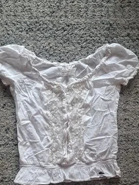 Abercrombie & Fitch White Lace-Front Ruffled Peasant Blouse