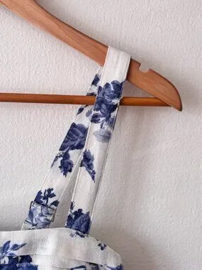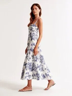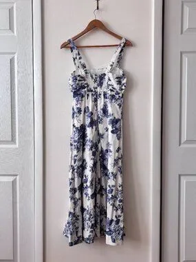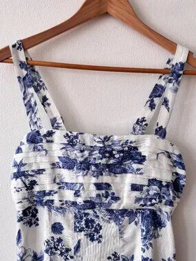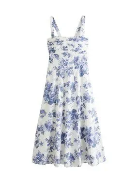 Embrace elegance with the Abercrombie & Fitch Midi Dress, featuring a stunning blue and white floral pattern. This sleeveless dress boasts a square neckline and a flowing silhouette, perfect for weddings or resort wear. Crafted from lightweight fabric, it offers both comfort and style for warm weather occasions.