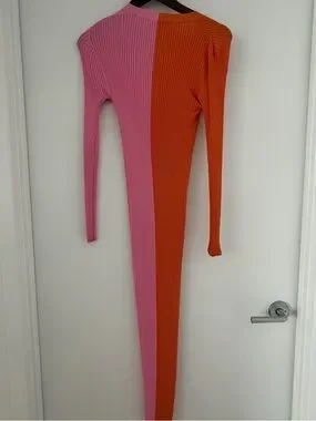 Staud Two-Tone Ribbed Long Dress in Pink & Orange size XS button down midi