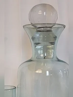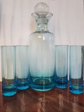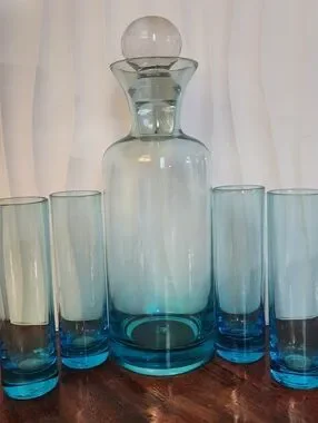 Turquoise Glass Decanter Set with Stopper and Shot Glasses