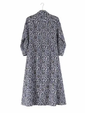 Maison Hotel Vintage Blue Cotton Roberta Dress Medium