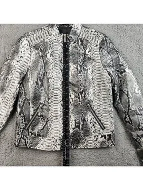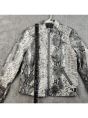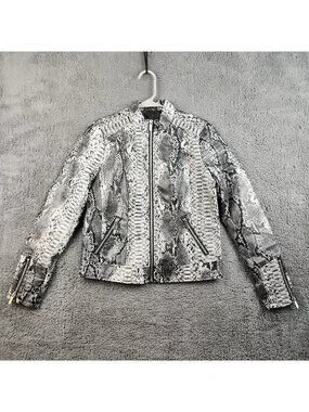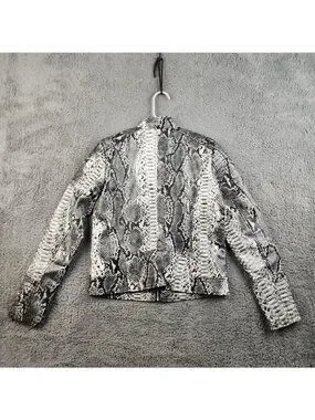 Y2K Faux Leather Moto Jacket Women's Petite Small Snake Skin Mob Wife Grunge