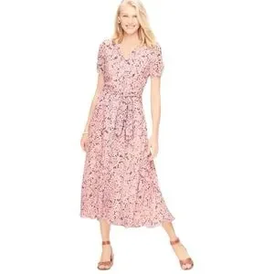 Talbots 8 New Button Front Floral Midi Dress Pink Cottage Core Prairie Spring