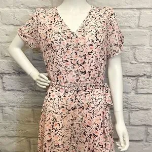Talbots Size 8 New With Tag Button Front Floral Midi Dress, Light Pink, Cottage Core, Prairie, Spring, Summer, Wedding Guest, Party, Romantic.