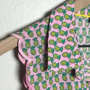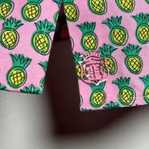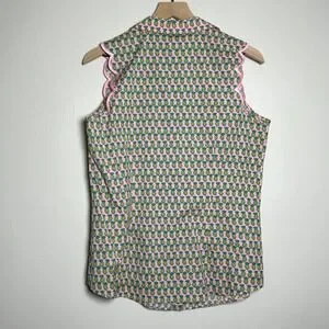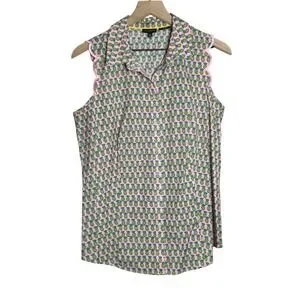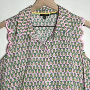 Talbots Womens Non Iron Shirt 10 Pink Pineapple Print Scalloped