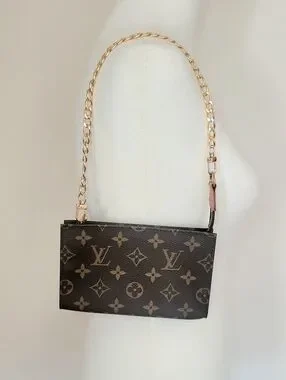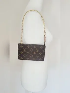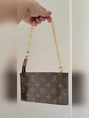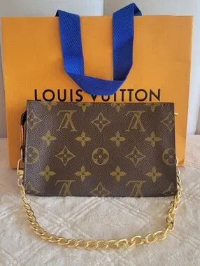 Chic Louis Vuitton pouch with signature monogram. Features a gold chain accent.