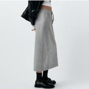 NWT ZARA Womens Felt Grey Tie Waist Skirt Size XS