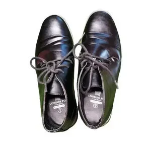 London Fog LFM Broadstreet shoes For Men.Size 9 Black.Memory Foam. Style No. PG601P. Pre-Owned. In Good Condition! See pictures for exact shoes. Some scratches on tips of shoes.