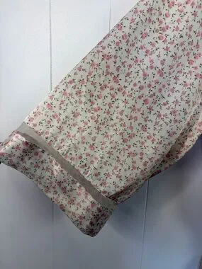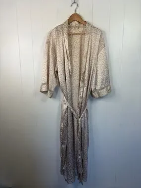 Vintage Cream Pink Rose Satin Kimono Robe Floral Cottagecore Romantic sz medium