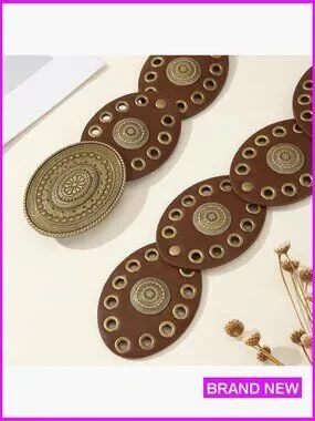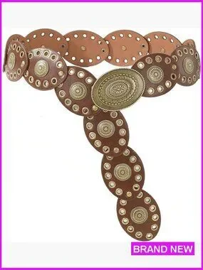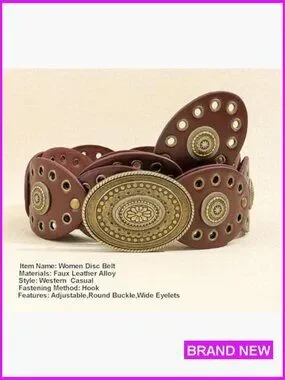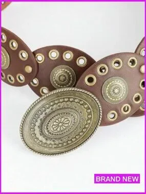 Wide Western Leather Belt Boho Concho Buckle Adjustable Vintage Cowgirl Style
