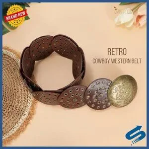 Western Hollow Disc Leather Belt Wide Adjustable Cowgirl Style