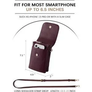 Dimension Information: 4.9”(L) x 2”(W) x 7.1”(H) inch. Come with a detachable & adjustable long strap, length range from 18.9 to 23 in. Convenient design features with a front magnetic flap & safe zipper. Perfect size to store your napkin paper, lipsticks, mascara, coins, cards, keys, etc. Lightweight and easy to carry with quality leather, Sleek profile & never going out of style