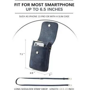 Dimension Information: 4.9”(L) x 2”(W) x 7.1”(H) inch. Come with a detachable & adjustable long strap, length range from 18.9 to 23 in. Convenient design features with a front magnetic flap & safe zipper. Perfect size to store your napkin paper, lipsticks, mascara, coins, cards, keys, etc. Lightweight and easy to carry with quality leather, Sleek profile & never going out of style