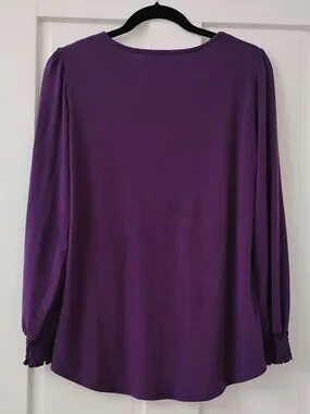 Dark Purple Long Puff Sleeve Smocked Tunic top