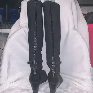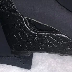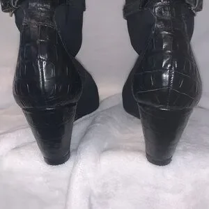 These are Donald J Piner couture: pull on wedge boots. made in Italy. They’re gently used and in overall excellent condition very clean. They’re stunning boots with the little accent buckle around the boot. They’re a size 6M. I did notice on the left boot at the base where the sole meets the boot appears to be slightly lifting, but that couldn’t be fixed with shoe glue. I shown in the pictures on both shoes where that’s happening at. The right shoe seems to be fined. It just has a little spot that is more worn at the base as shown in the pictures. (Box 9)