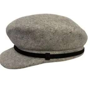 Stylish gray wool cap perfect for any occasion. Features a sleek black band for added elegance.