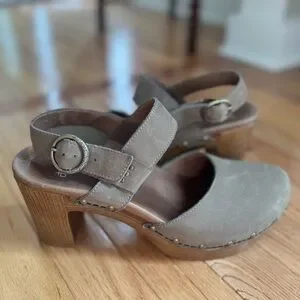 Classic Dansko mary jane clog heels in a versatile taupe nubuck leather 🤎