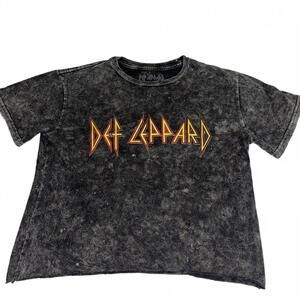 Def Leppard Vintage Style Acid Wash Band Cropped TShirt Black Womans Small Rock