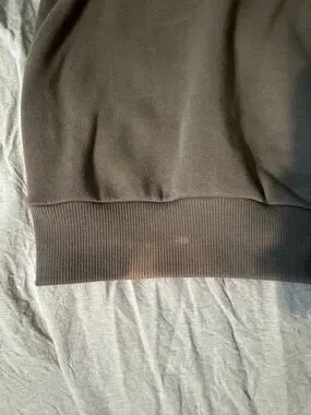 There is a small stain on the bottom cuff of the sweatshirt (I have no idea where it came from) but it is completely hidden when the crewneck is scrunched up which it will be when you wear it.