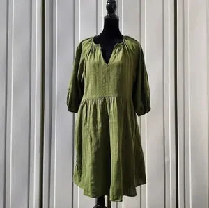London Times Womens Green Dress Medium V-Neck. Very Comfortable and Stylish Dress. 100% Cotton , Made in Sri Lanka , Dress is Lined.Pre-Owned In Great Condition! Please, See Pictures For Exact Dress and Mesurements and Check Out The Cool Video!