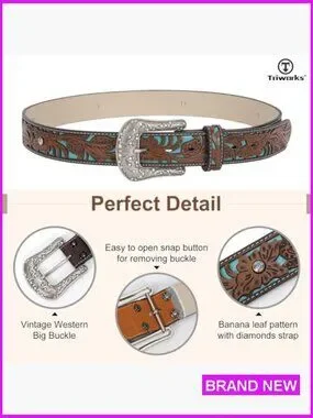 Western Belt Rhinestone Buckle Adjustable Faux Leather Cowgirl Style Accessory
