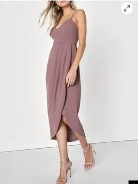 Lulu's Mauve Spaghetti-Strap Tulip Midi Dress Size M