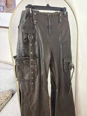 Atelier Redesign Faux Leather wide leg flare leg pants eclectic boho