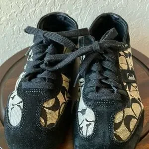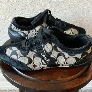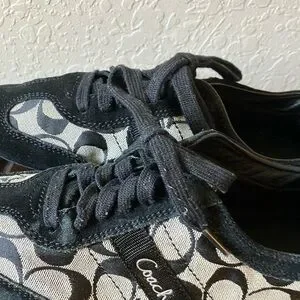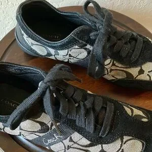 Step out in style with these Coach sneakers. Featuring a sleek black and gray design, these shoes offer both comfort and elegance. Perfect for any casual outing.