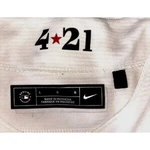The product is a Marcus Semien Texas Rangers Nike Men's City Connect Jersey in size Large, featuring a matching cap. This officially licensed baseball jersey is designed for men and showcases the player's name and team. The cream-colored jersey is perfect for fans of Major League Baseball and the Texas Rangers, offering a stylish and comfortable option for showing support during city connect events and games. Made in Indonesia, this Nike jersey is a must-have for any avid baseball fan looking to represent their favorite player and team.