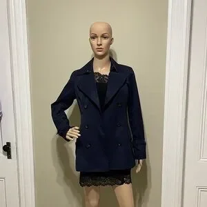 Elevate your style with this elegant navy double-breasted jacket. Perfect for any occasion, this coat offers both sophistication and comfort.